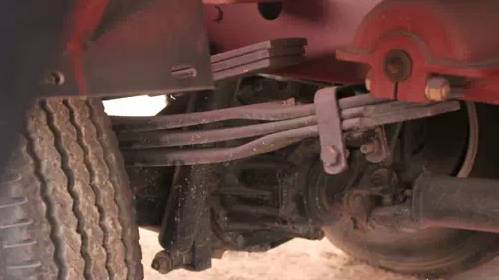 前后鑄鋼件支座和吊耳,131變截面少簧片,降低車輛重心,加上底盤寬大在提高車輛承載能力的同時更提高了車輛行駛過程中的穩(wěn)定性;