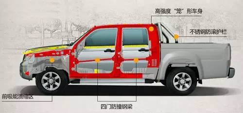 虎子擁有一身高強(qiáng)度“籠”形鋼性車身,設(shè)有前吸能潰縮區(qū),四門(mén)防撞鋼梁,并裝有不銹鋼防滾護(hù)欄。